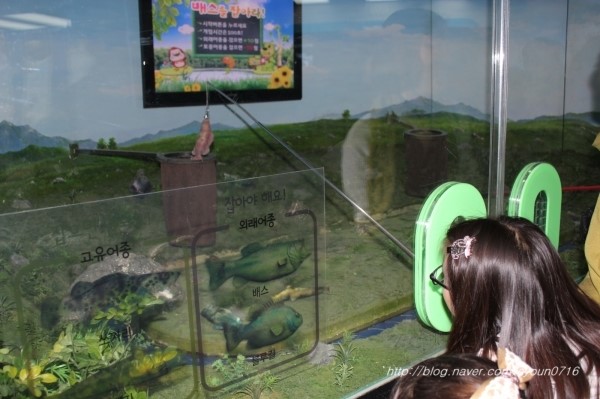 아리랑 산촌마을을 선택했는데 먼저 모이는 장소가 민물고기 생태학습장이었죠~