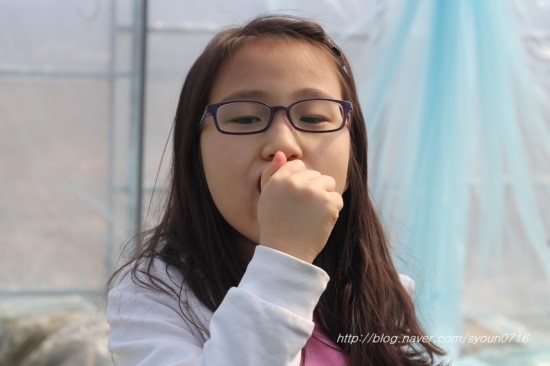 딸기 따는 법은 인지하고 먼저 딸기의 맛을 보는 그녀...