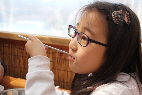 한숟갈 떠 먹는 그녀의 얼굴에 웃음꽃이....