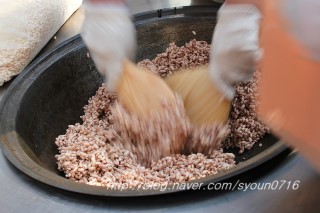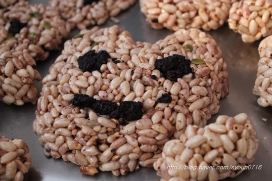 물엿대신 벌꿀을 넣어 보았는데 아쉽게도 잘 뭉쳐지지가 않아서 물엿을 사용하게 되었다네요..