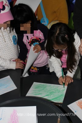 아이들도 작은 밀랍통에다 실을 넣었다 뺐다 하고 있네요.