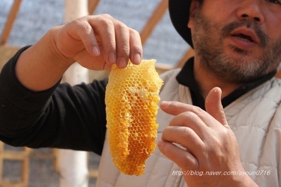 야생화꿀, 밤꿀, 아카시아꿀, 토종벌꿀등이 있었는데 그녀가 맛보는 건 아카시아 꿀.....