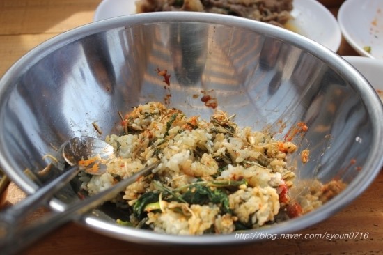 시래기 밥에 나물을 넣고 고추장을 조금넣어 슥슥 비벼 놓았답니다.