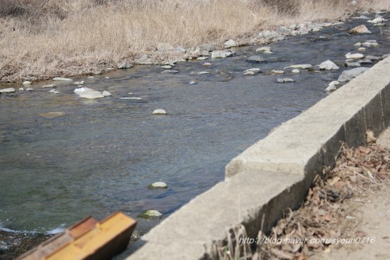 체험장 앞에는 이렇게 개울이 있는데 여름이 되면 송어도 잡고 뗏목도 탈 수 있다고 하네요.